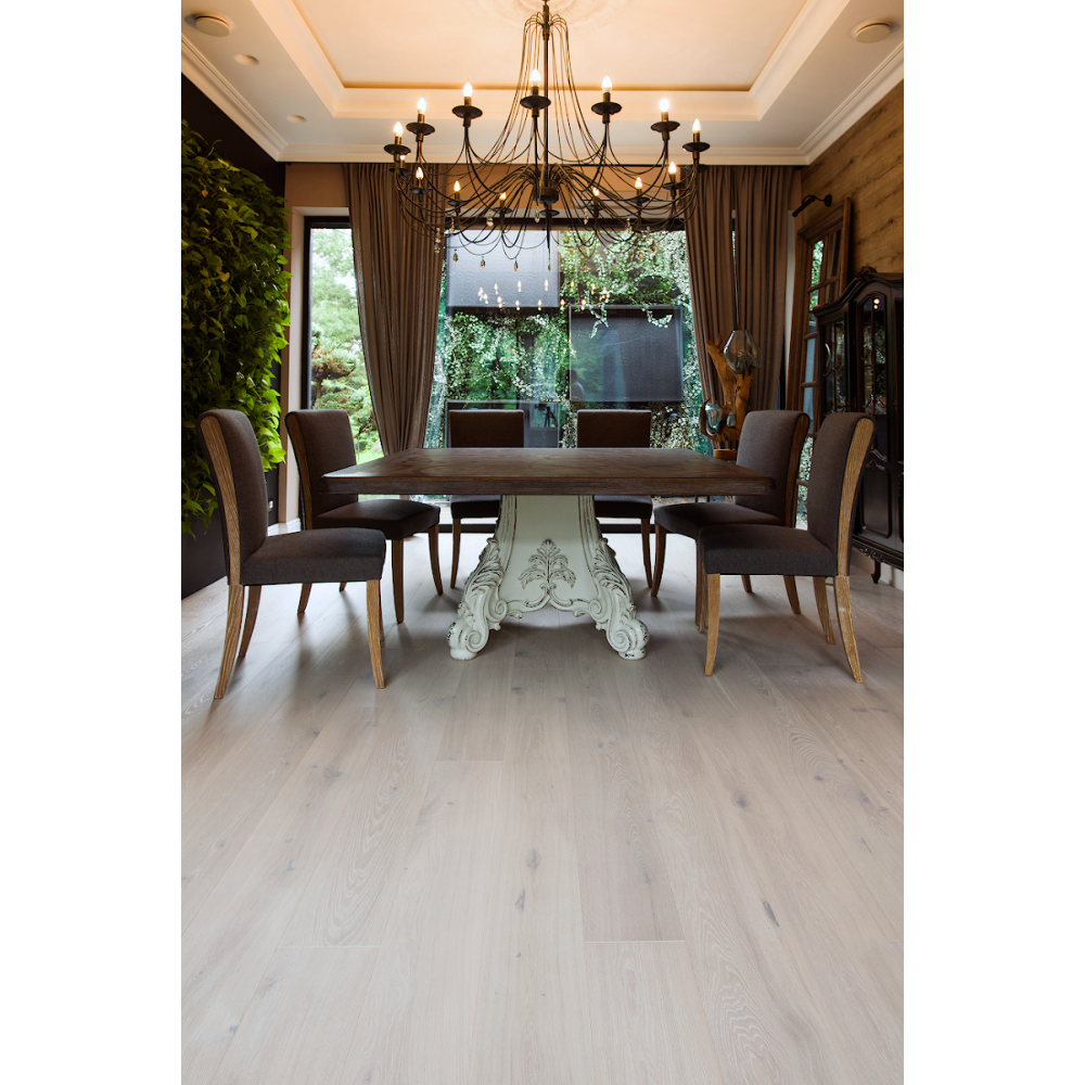 Трехслойная инженерная доска Coswick Дуб АЛЬПИЙСКИЙ шириной 127 мм в селекции Таверн характеризуется умеренно контрастной вариацией цвета. Присутствуют отреставрированные сучки, заболонь, прожилки, свилеватость, завиток, червоточины. Реставрация выполняется с художественным подходом: максимально сохраняется первозданный вид сучков, для заполнения используется шпатлевка с древесной составляющей. Сучки мягко подчеркивают натуральность и солидность дубовых паркетных полов.