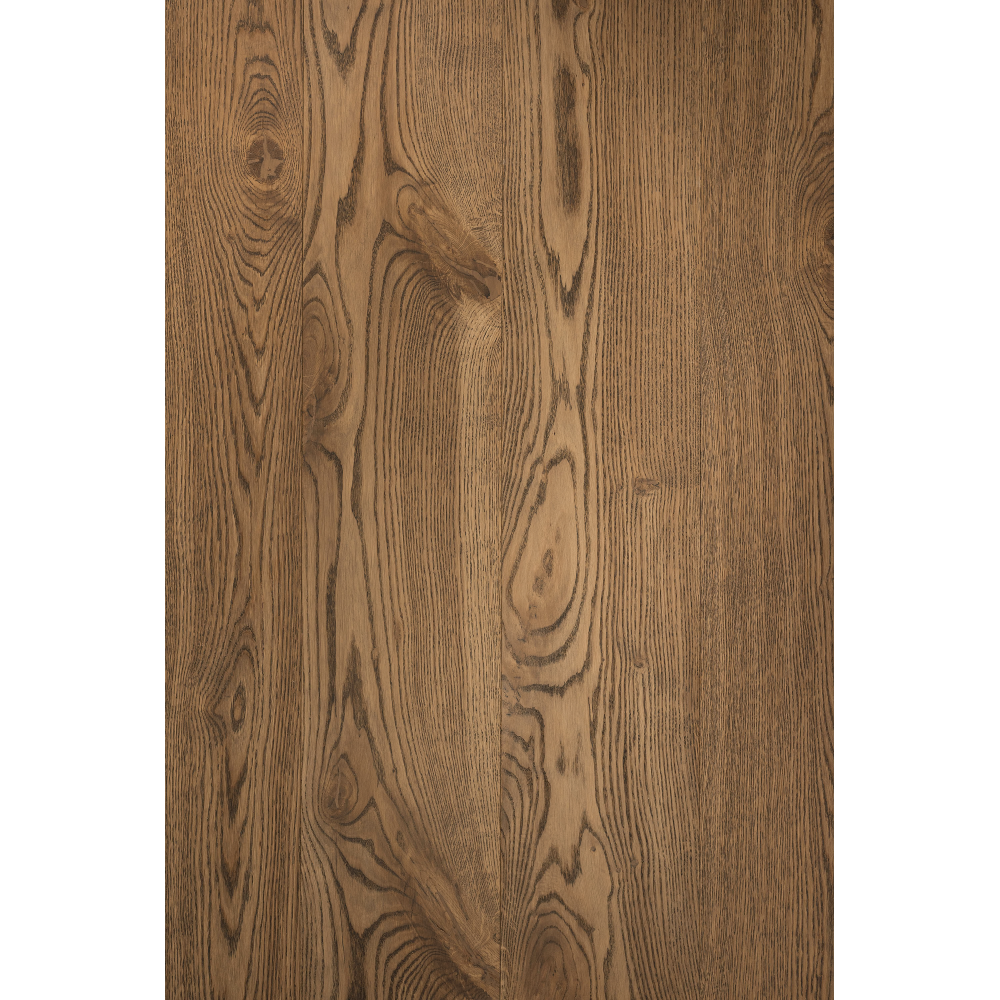 Трехслойная инженерная доска Coswick Дуб АМБАРНЫЙ шириной 190 мм в селекции Черектер характеризуется умеренно контрастной вариацией цвета. Присутствуют заболонь, прожилки, свилеватость, отреставрированные сучки любых размеров, пластевые и торцевые трещины, червоточины. Реставрация выполняется с художественным подходом: максимально сохраняется первозданный вид сучков, для заполнения используется шпатлевка с древесной составляющей. Поверхность имеет достаточно однородный тон и текстуру, сучки и прочие неоднородности мягко подчеркивают натуральность и солидность дубовых паркетных полов.