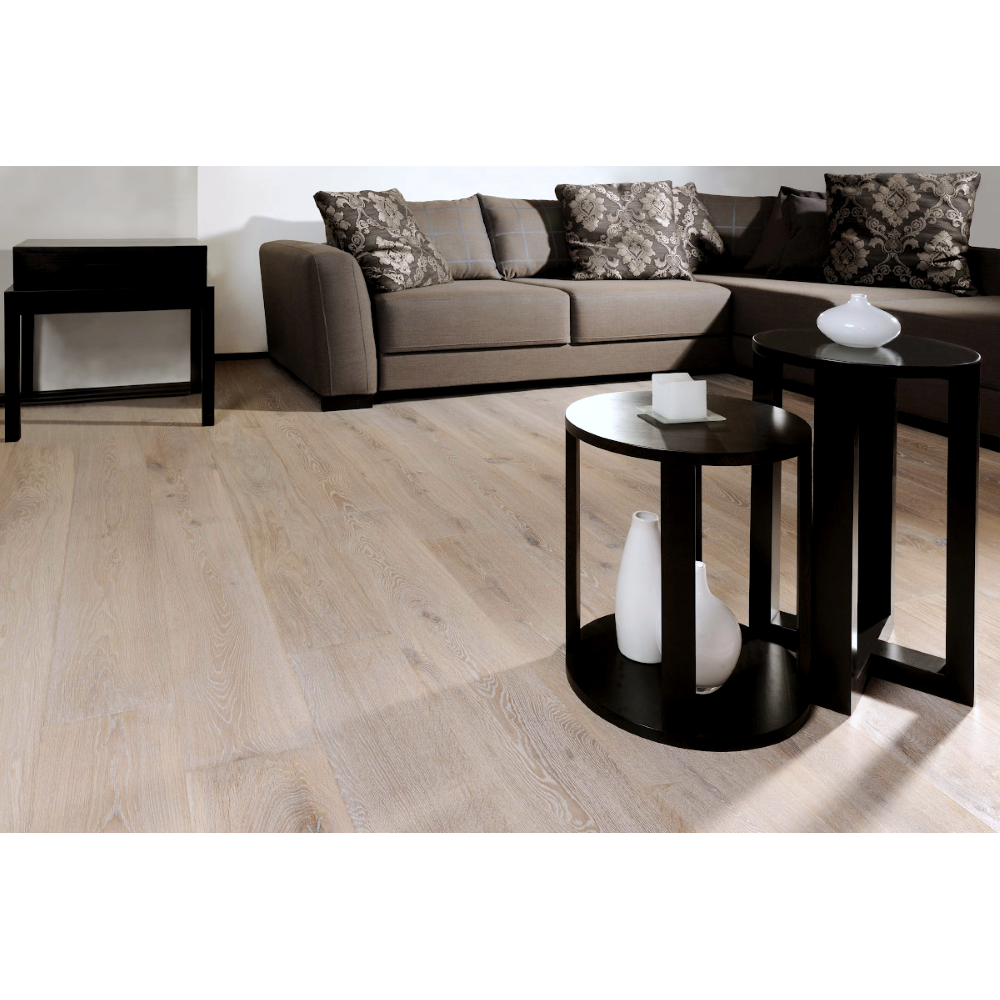 Трехслойная инженерная доска Coswick Дуб БАРСЕЛОНА шириной 127 мм в селекции Таверн характеризуется умеренно контрастной вариацией цвета. Присутствуют отреставрированные сучки, заболонь, прожилки, свилеватость, завиток, червоточины. В процессе художественной реставрации сучков максимально сохраняется их первозданный вид, легкая двойная тонировка проявляет и подчеркивает природную красоту, неповторимость и многообразие текстурного рисунка дуба.