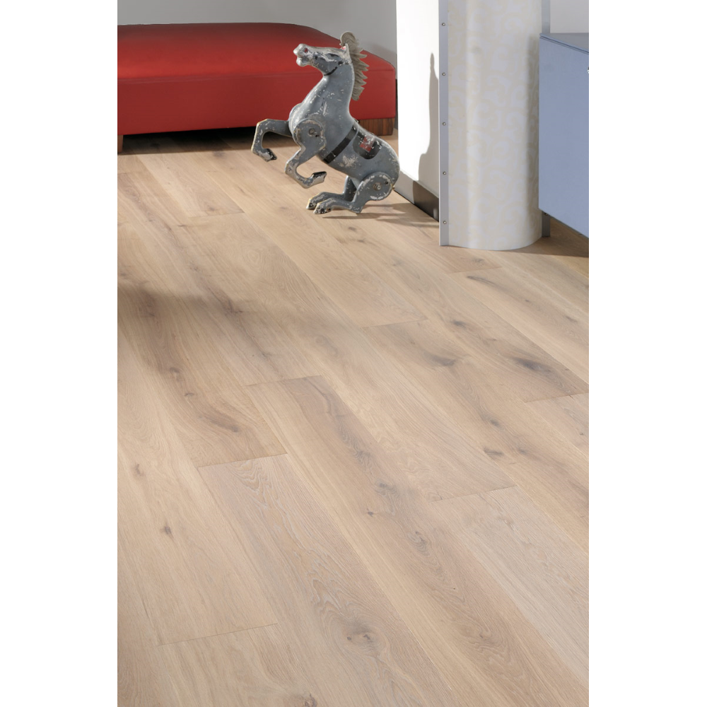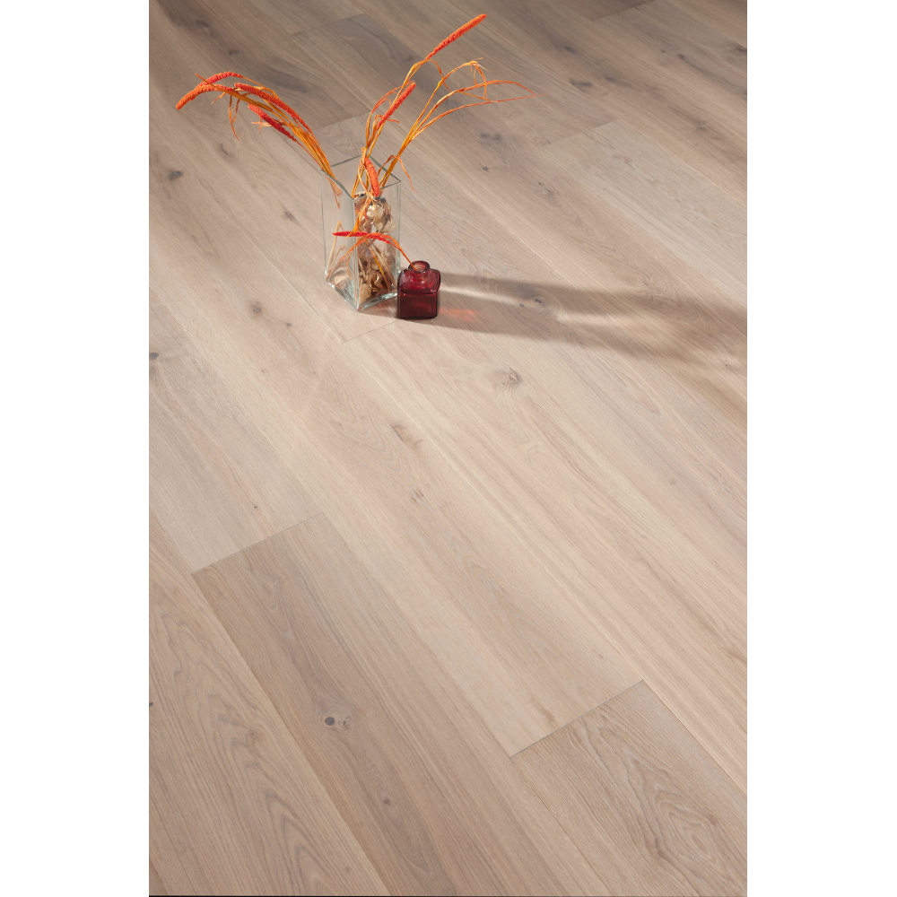 Трехслойная инженерная доска Coswick Дуб БАТИСТ шириной 190 мм в селекции Черектер характеризуется умеренно контрастной вариацией цвета. Присутствуют заболонь, прожилки, свилеватость, отреставрированные сучки любых размеров, пластевые и торцевые трещины, червоточины. Реставрация выполняется с художественным подходом: максимально сохраняется первозданный вид сучков, для заполнения используется контрастная шпатлевка с древесной составляющей. Сучки подчеркивают природную красоту, неповторимость и многообразие текстурного рисунка дуба.