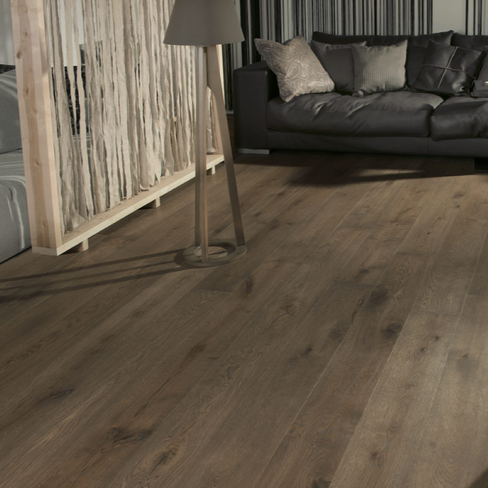 Трехслойная инженерная доска Coswick Дуб МАРСЕЛЬ шириной 190 мм в селекции Черектер характеризуется умеренно контрастной вариацией цвета. Присутствуют заболонь, прожилки, свилеватость, отреставрированные сучки любых размеров, пластевые и торцевые трещины, червоточины. Реставрация выполняется с художественным подходом: максимально сохраняется первозданный вид сучков, для заполнения используется шпатлевка с древесной составляющей. Поверхность имеет достаточно однородный тон и текстуру, трещины и сучки мягко подчеркивают натуральность и солидность дубовых паркетных полов.
