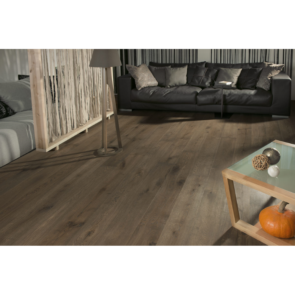 Трехслойная инженерная доска Coswick Дуб МАРСЕЛЬ шириной 190 мм в селекции Черектер характеризуется умеренно контрастной вариацией цвета. Присутствуют заболонь, прожилки, свилеватость, отреставрированные сучки любых размеров, пластевые и торцевые трещины, червоточины. Реставрация выполняется с художественным подходом: максимально сохраняется первозданный вид сучков, для заполнения используется шпатлевка с древесной составляющей. Поверхность имеет достаточно однородный тон и текстуру, трещины и сучки мягко подчеркивают натуральность и солидность дубовых паркетных полов.