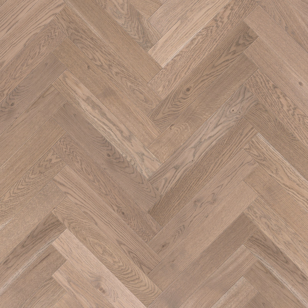 Английская елка Coswick Дуб ПАСТЕЛЬ РУСТИКАЛЬНАЯ шириной 82.55 мм в селекции 1 Коммон характеризуется умеренно контрастной вариацией цвета. Присутствуют неконтрастная заболонь, прожилки и свилеватость, отреставрированные сучки до 25 мм и иные незначительные дефекты. Поверхность имеет достаточно однородный тон и текстуру, сучки и прочие неоднородности слабо различимы.