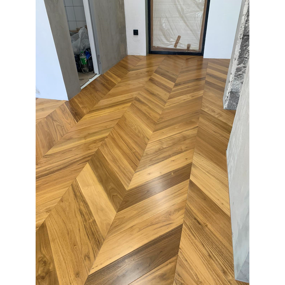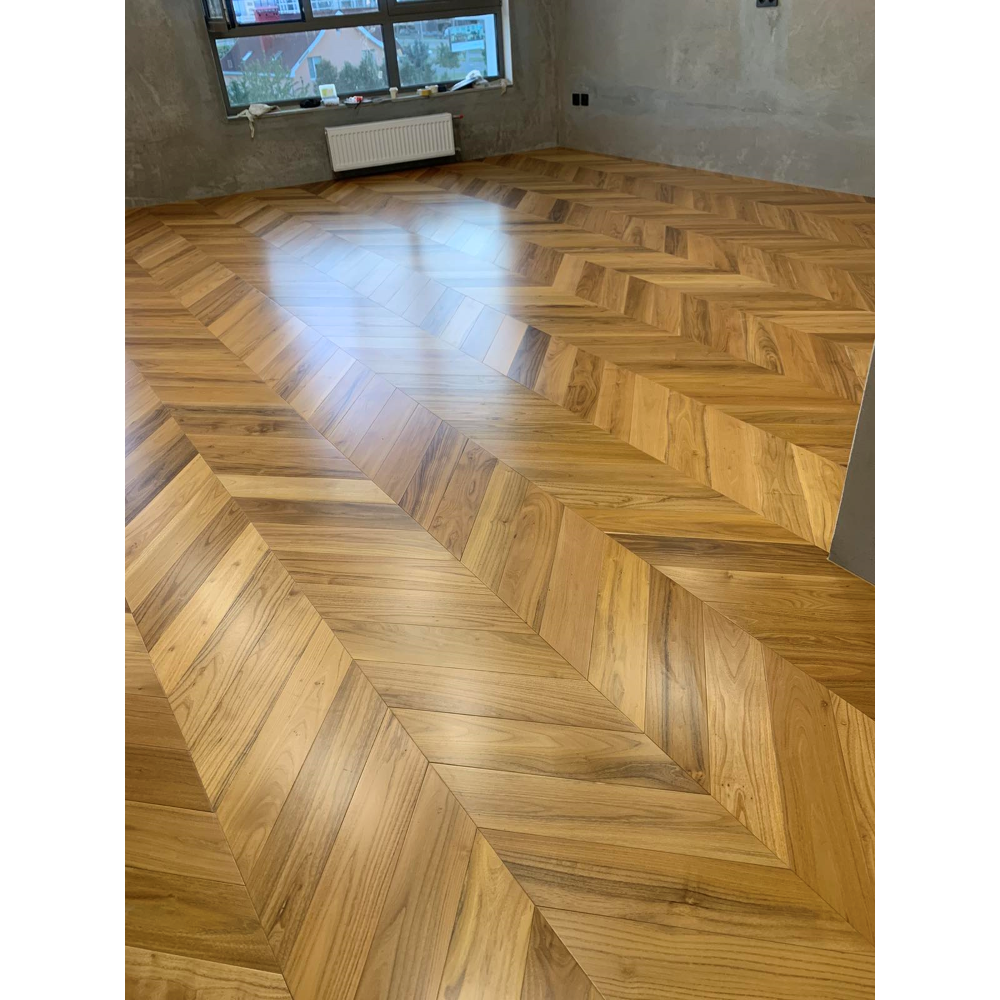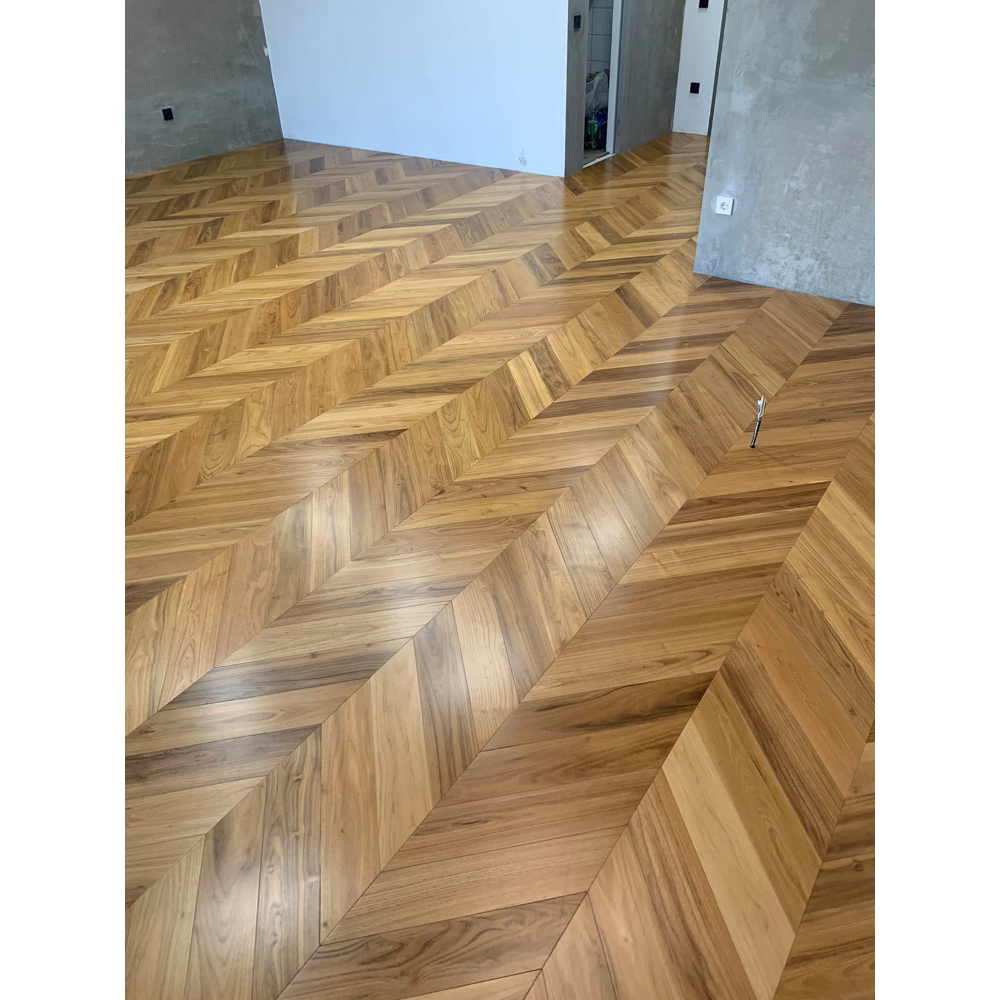Французскую елку из Тика рекомендуется устанавливать на клей непосредственно на стяжку или на фанеру. Возможен монтаж на уровне земли, а также выше либо ниже него.