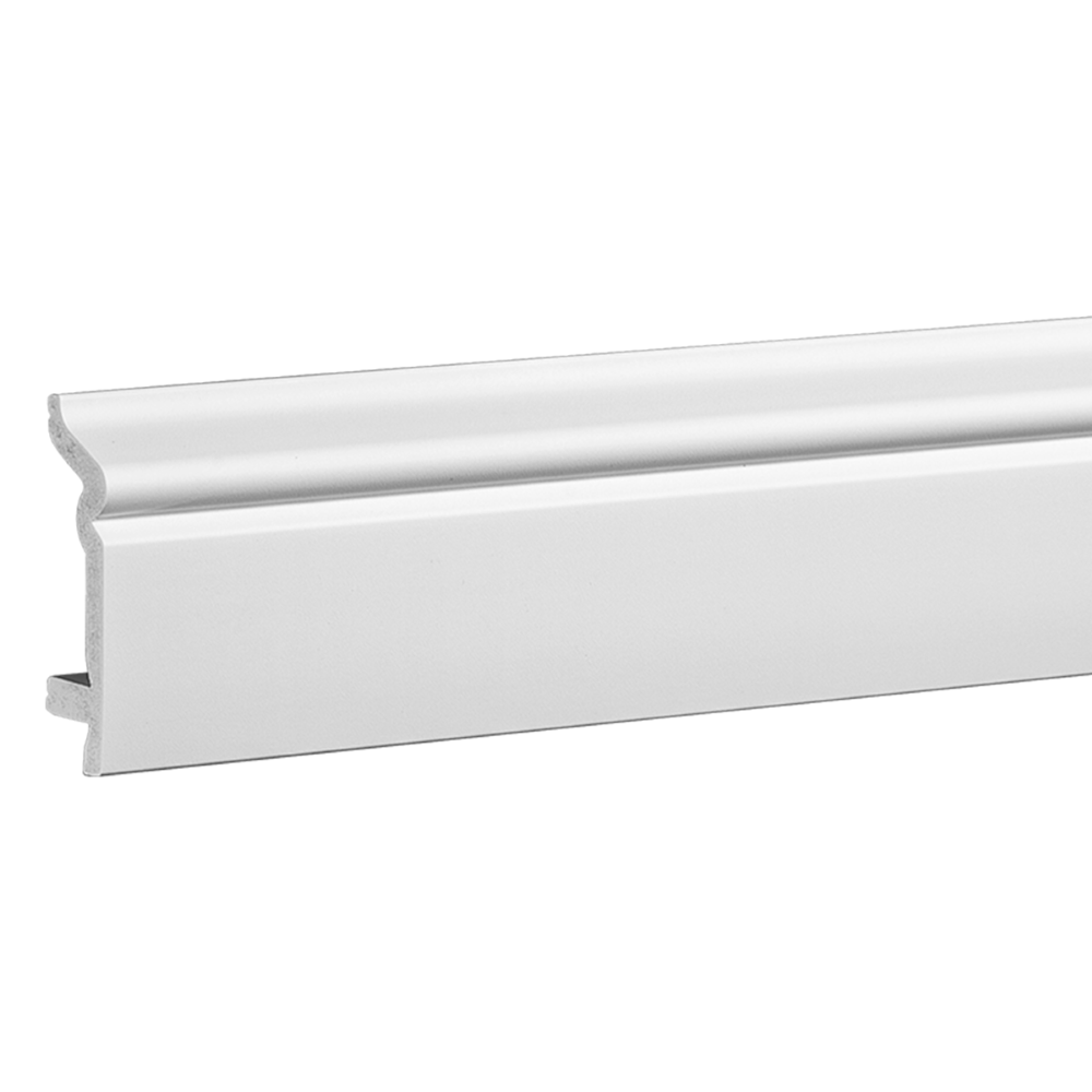 Плинтус Европласт 6.53.107 изготовлен из вспененного композиционного полимера высокой плотности на основе полистирола – перфом. Отличается повышенной ударопрочностью и более высокими, чем у полиуретановых аналогов, антивандальными свойствами, которые особенно востребованы для плинтусов. Еще одно преимущество: усадка этих изделий ниже. Приличная ширина плинтуса позволяет закрыть достаточно широкий технологический зазор между паркетным полом и стеной, а также скрыть многочисленные провода.
